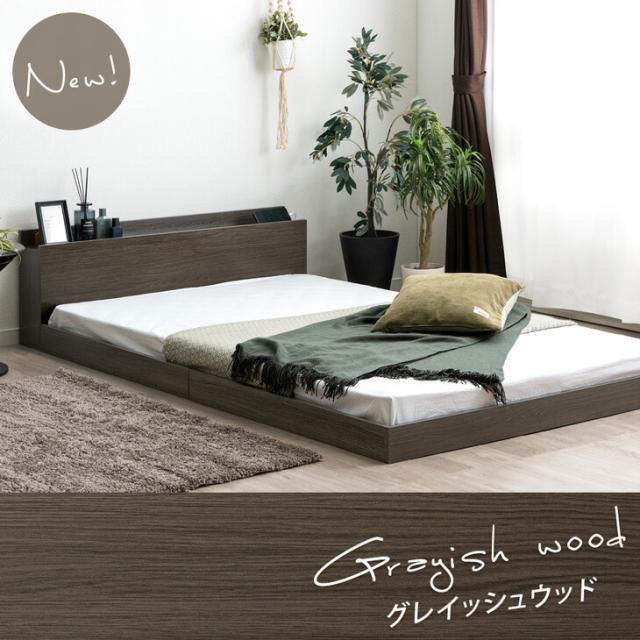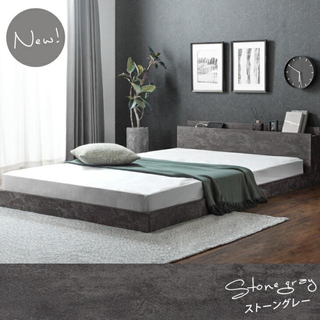 ベッド マットレス付き USB・2コンセント&スマホスタンド付 マットレス付 フレーム 宮棚付き すのこベット ローベット クイーンサイズ クイーンベッド おしゃれ マット付き