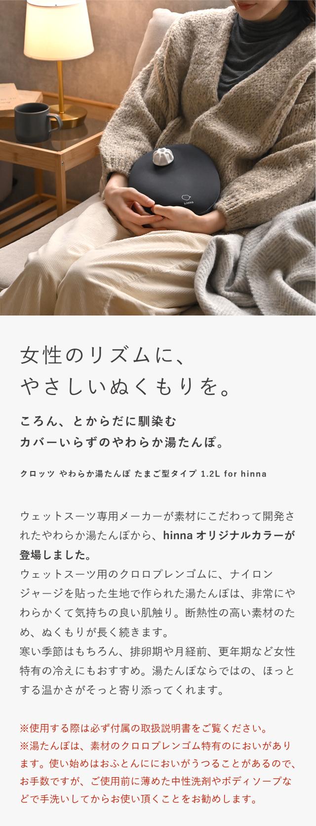クロッツ hinna限定カラー 【正規品】【1年間保証書付】 やわらか湯たんぽ たまご型タイプ 1.2L for hinna 専用のネジ付きロート付 カバー不要 ウェットスーツ素材 お湯 温かい 冷え 防寒 ギフト プレゼント ts1031