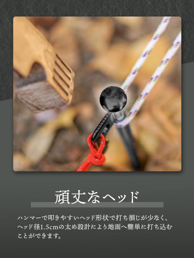 テントやタープの設営に頼れる、強靭なスチール製ペグです。
