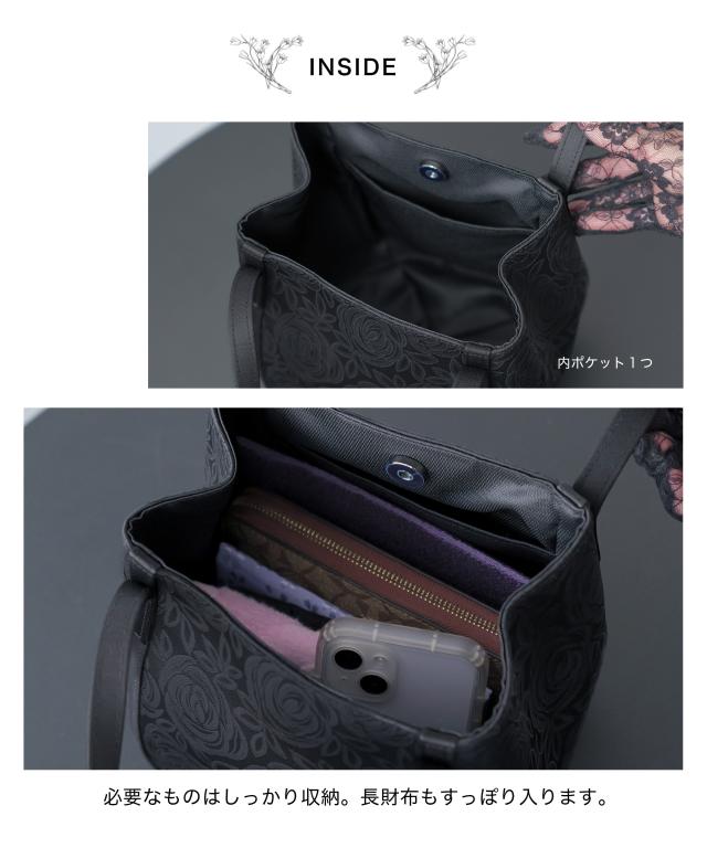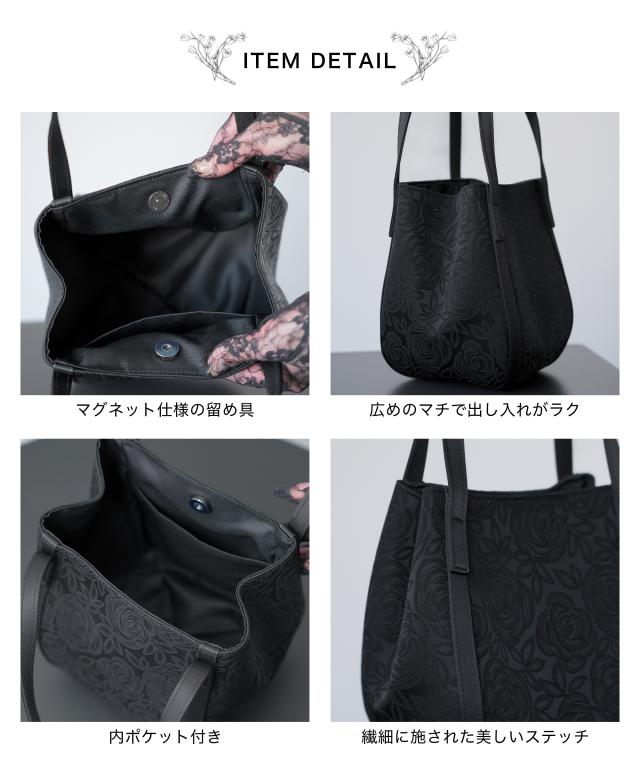 ■上品な花柄模様が映えるブラックフォーマルバッグ