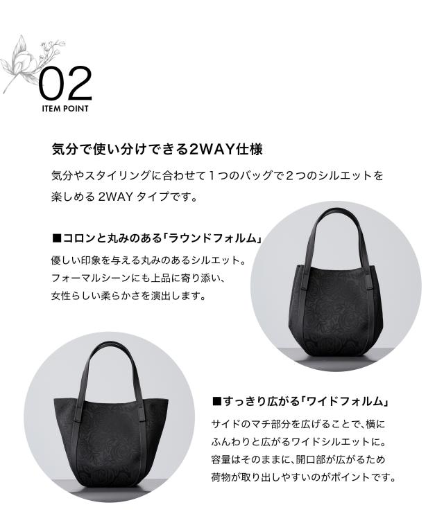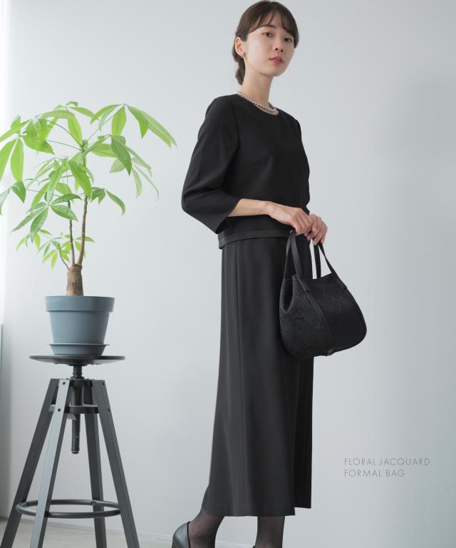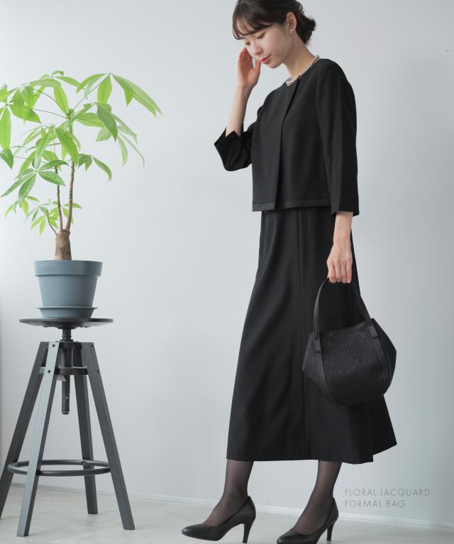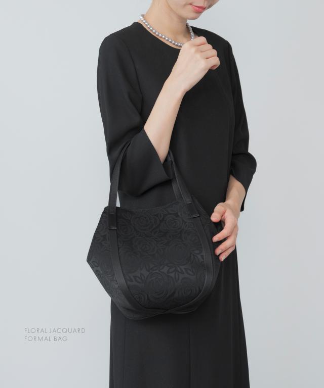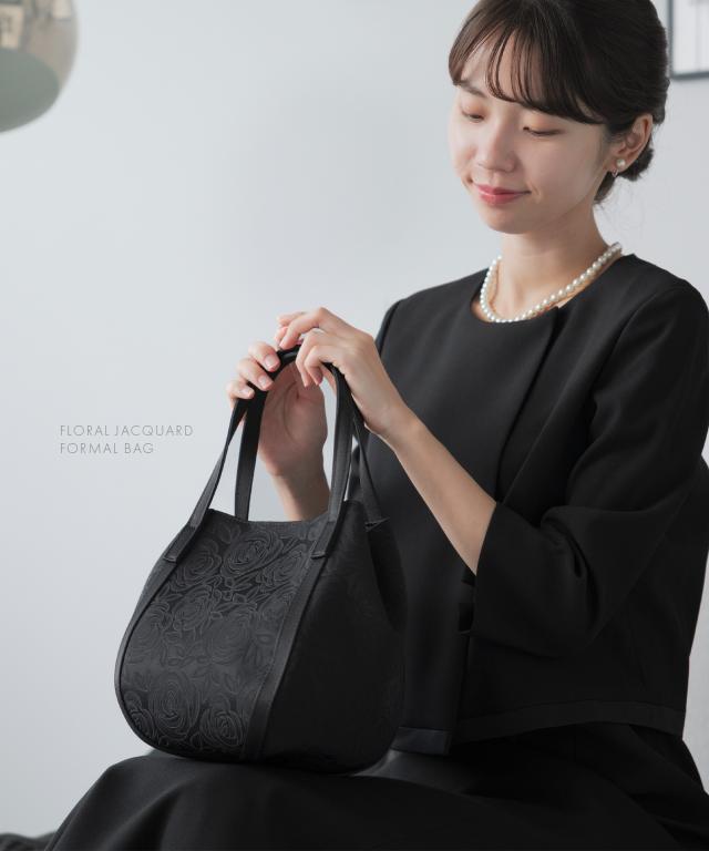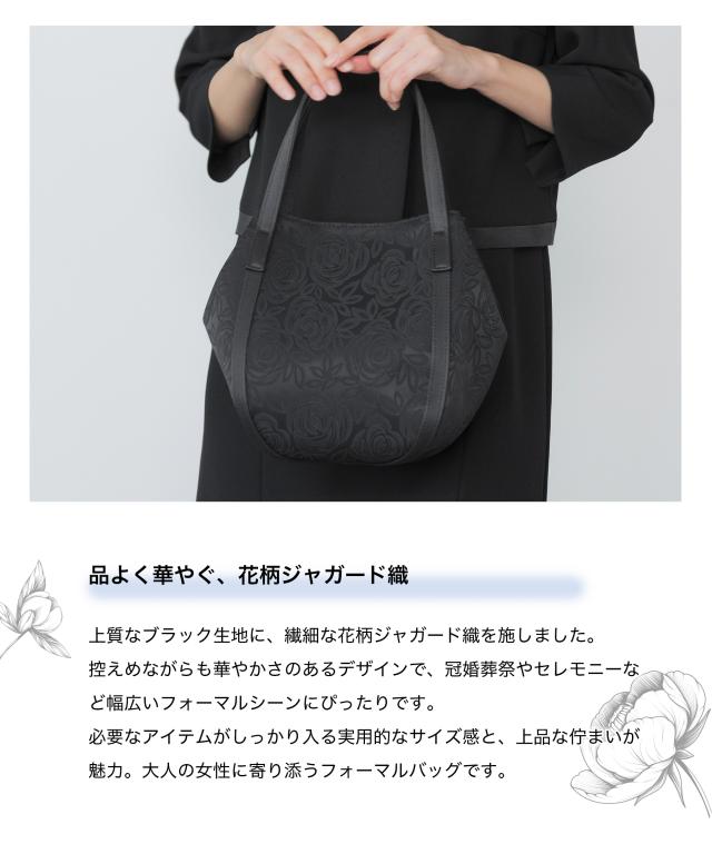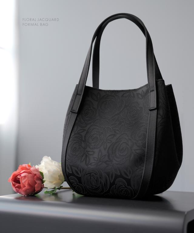 冠婚葬祭や卒業式・入学式など、あらゆるフォーマルシーンで活躍する 花柄ジャガード織ブラックフォーマルバッグ。