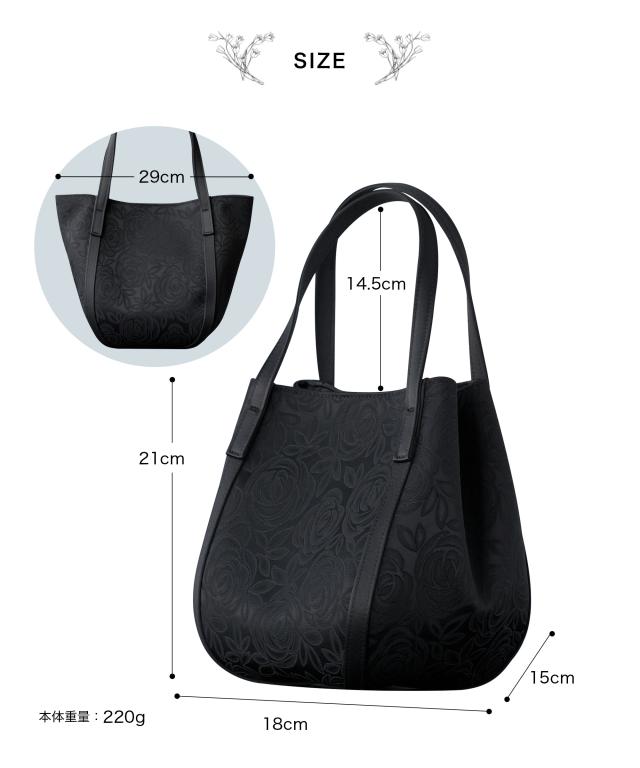 持ち手の高さ:14.5cm 幅:18cm(29cm) / 奥行:15cm / 高さ:21cm (内ポケット) 高さ:13cm / 幅:16cm |