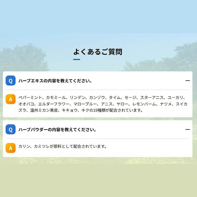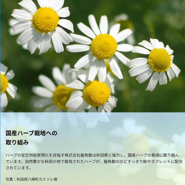 砂糖、水飴、クリーミングパウダー、植物油脂、ハーブパウダー、脱脂粉乳、マーガリン、プロポリス抽出液、ローヤルゼリーエキス、ハーブエキス、香料、着色料(カラメル、葉緑素)、乳化剤、酸味料