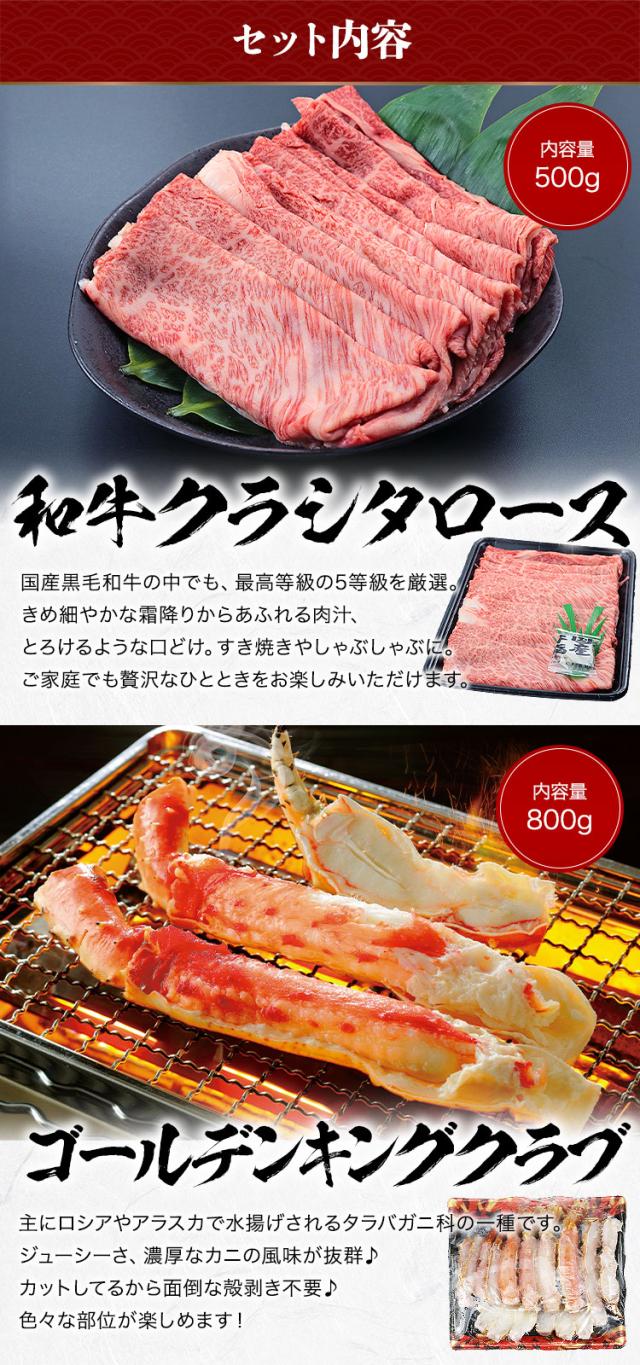 やわらかな和牛クラシタロースと、旨み濃厚なゴールデンキングクラブを