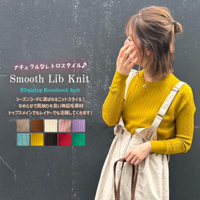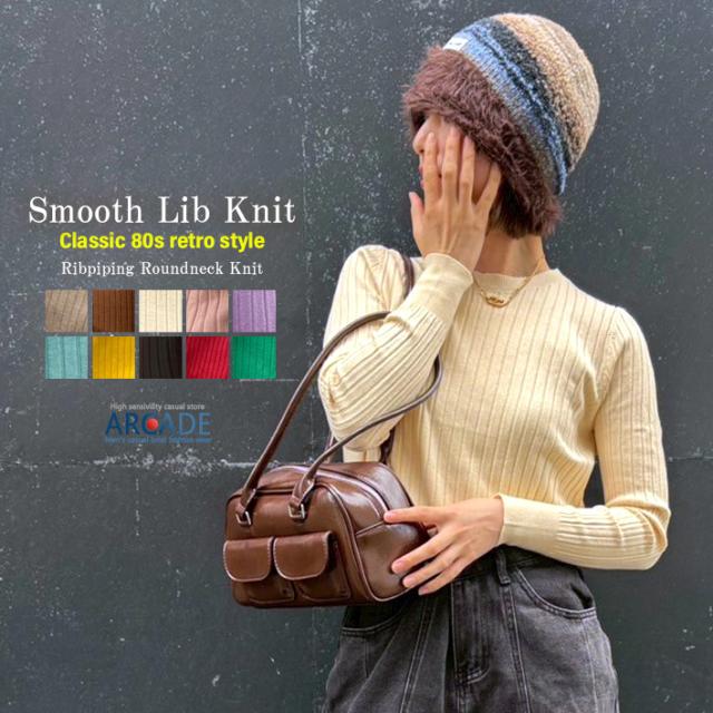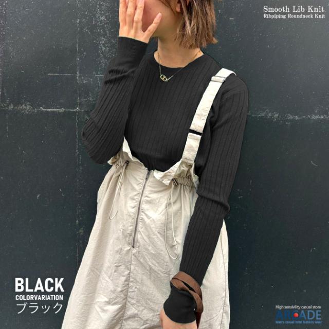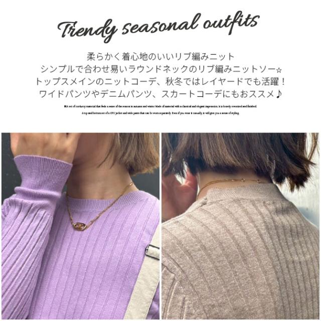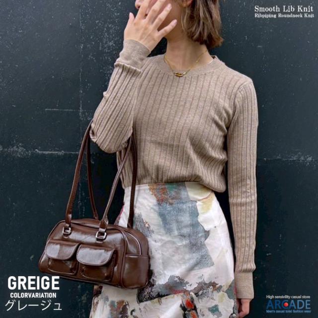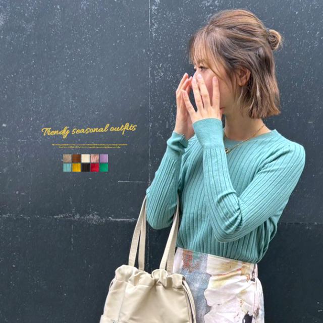 ニット レディース リブニット 無地 冬新作 クルーネックニット 丸首 リブ編みニットカットソー Y2K レトロファッション