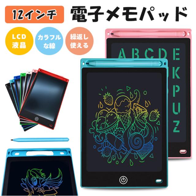 電子メモ お絵かきボード 電子メモパッド 知育玩具 12インチ カラー タブレット 伝言板 文字練習 子供 大人気 大人用 薄型 おえかき カラフル スタンド 知育 自宅 玩具 遊び 文字 お絵描きボード 女の子 男の子 誕生日 お祝い プレゼント ギフト 送料無料