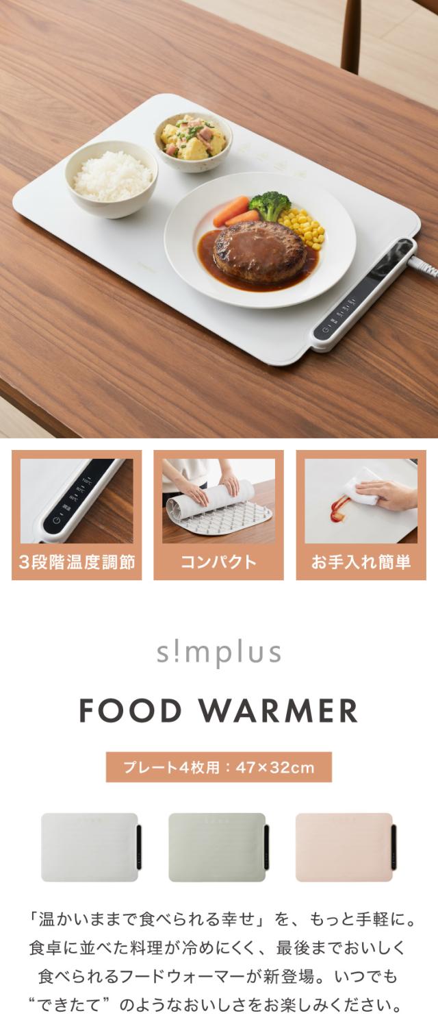 simplus 保温プレート プレート4枚用 ホットプレート 食事マット シリコン製 防水 10秒急速加熱 60~100℃ 3段階温度調節 折り畳み式 家庭用 操作簡単 お手入れ簡単 シンプラス SP-HWP02 食品保温機【送料無料】