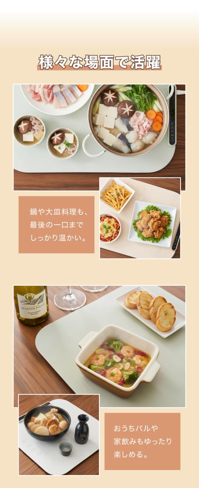 ・滑り止め付き立体脚:裏面の立体脚で滑りにくく、テーブルを熱から守ります。※ガラステーブルは耐熱マット併用推奨