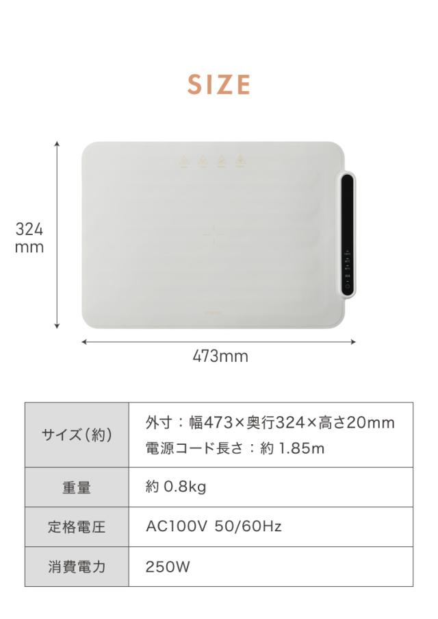 ・高速加熱&省エネ設計:電源ONから約10秒で加熱開始。消費電力250W、室温下で約13分で100℃に到達します。