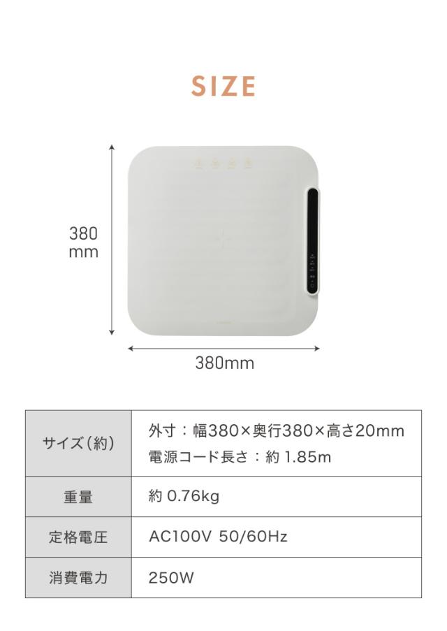 ・高速加熱&省エネ設計:電源ONから約10秒で加熱開始。消費電力250W、室温下で約13分で100℃に到達します。