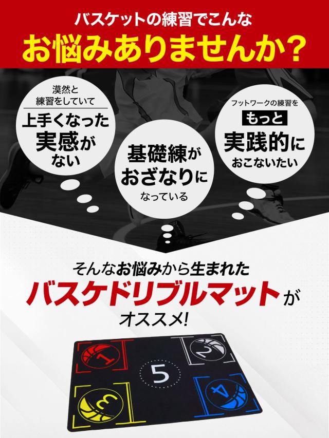 ドリブルをする位置やフットワークの足の出し方などが視覚化できるから身に付きやすい!初心者はもちろん基礎練強化におすすめの、自宅でも使えるドリブルマットです!