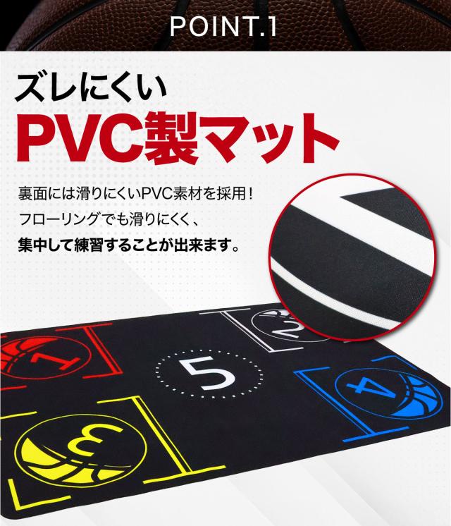 【滑りにくいPVC製】裏面は滑りにくいPVC素材を採用し、フローリングの上でも安心してドリブル練習が可能。また、耐久性もあり床を傷つけにくいので、自宅でも気兼ねなく練習できます。