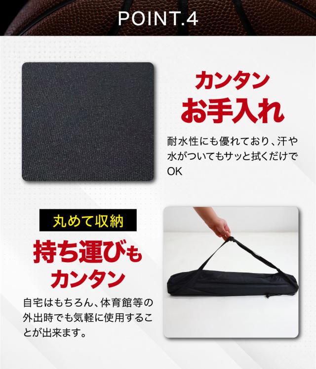 【収納も持ち運びもコンパクトに】専用の収納袋が付属しているので、丸めて簡単に収納することができます。持ち手付きなので、体育館や外出時などへの持ち運びもしやすくしました。自宅でも、チームでも、気軽にお使いいただけます。