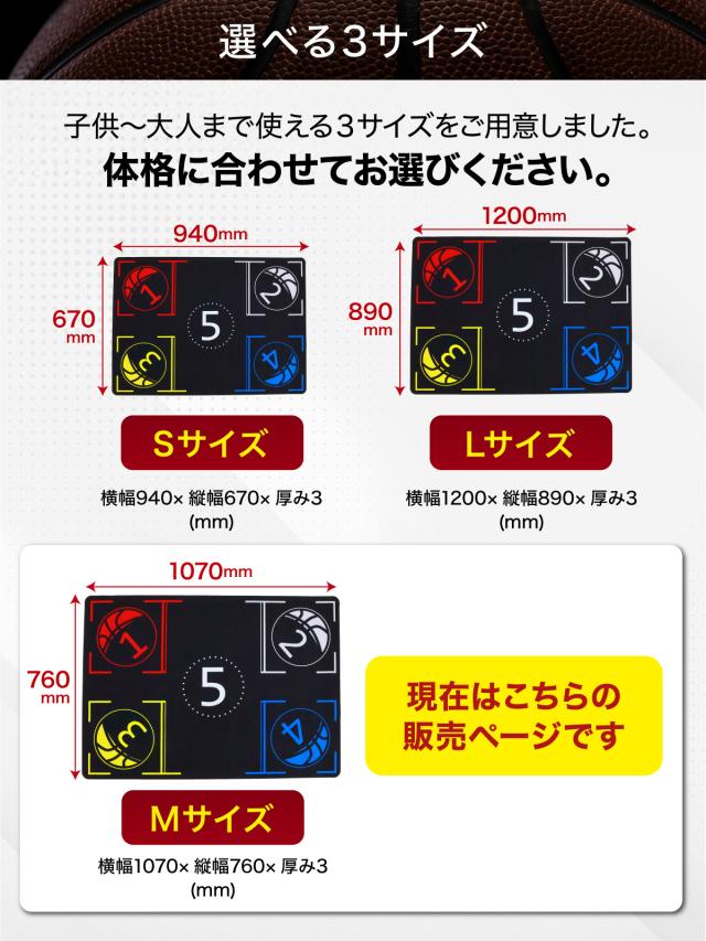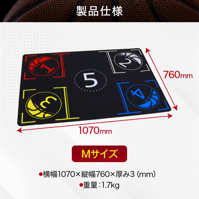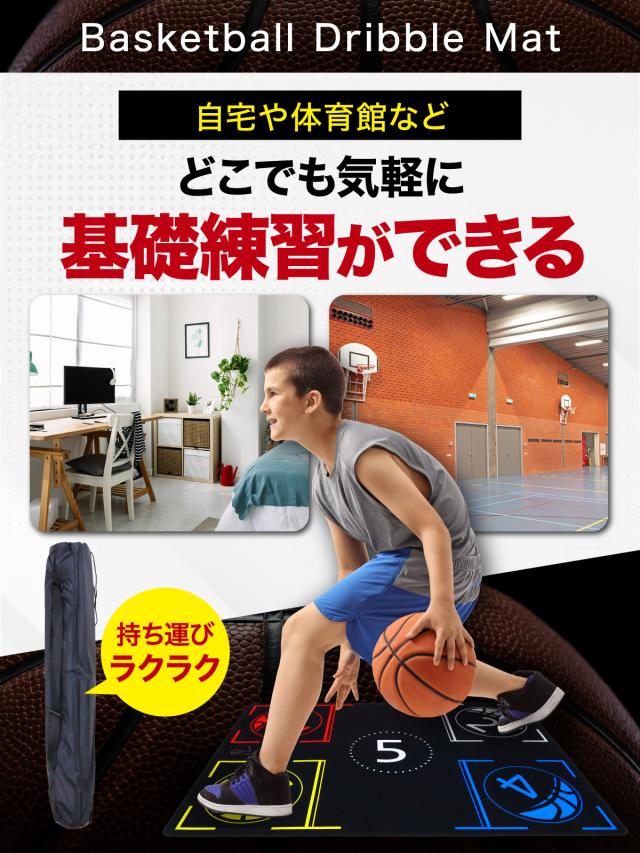 バスケ マット Mサイズ 107×76cm 練習 ドリブル 室内 滑り止め 防音 トレーニング フットワーク ステップ 厚手 3mm バスケットボール 収納袋付き