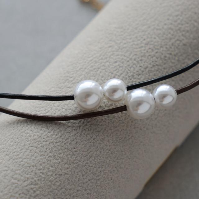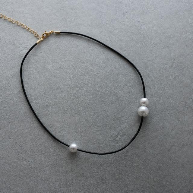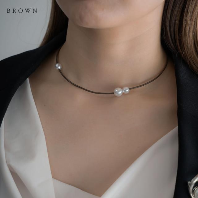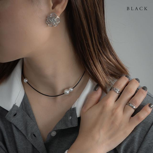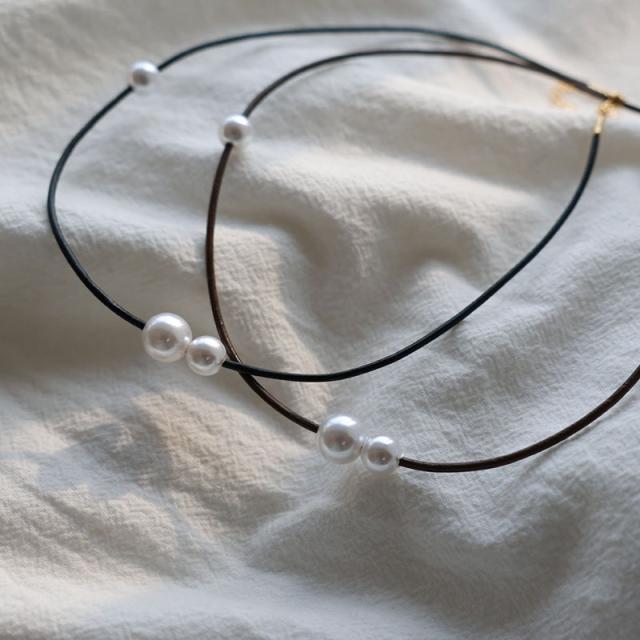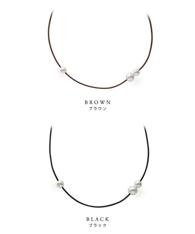 ネックレス チョーカー 金属アレルギー パール レディース ニッケルフリー ビニールコード ニュアンス ブラック ブラウン アシンメトリー シンプル