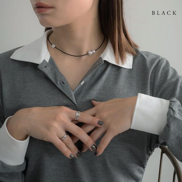 艶やかなパールの質感と暗色カラーのコードがマッチしてスタイリッシュな胸元を演出してくれます。