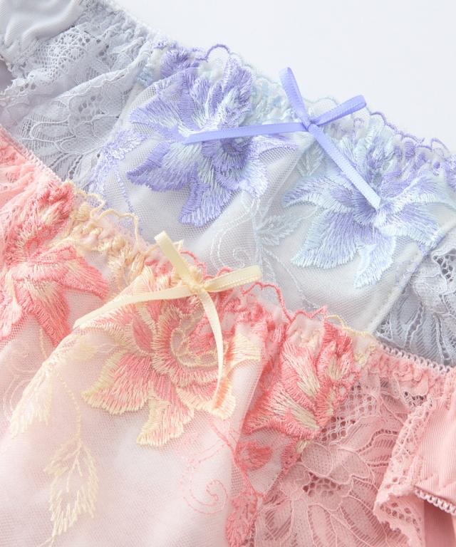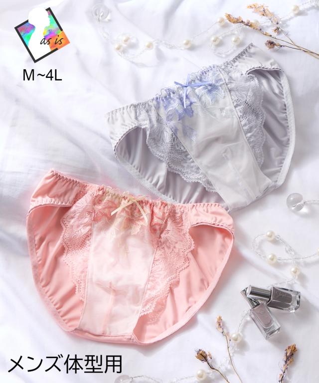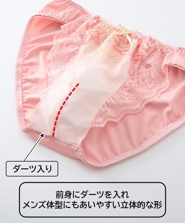 可愛いショーツを実際に履いてみたい、そんな願いをかなえるショーツです。ダーツを入れることでより男性体型にあいやすい立体的な形に。大きな百合の花のようなレース柄がとってもエレガントでゴージャス!お揃いのブラジャーもぜひチェックしてくださいね!