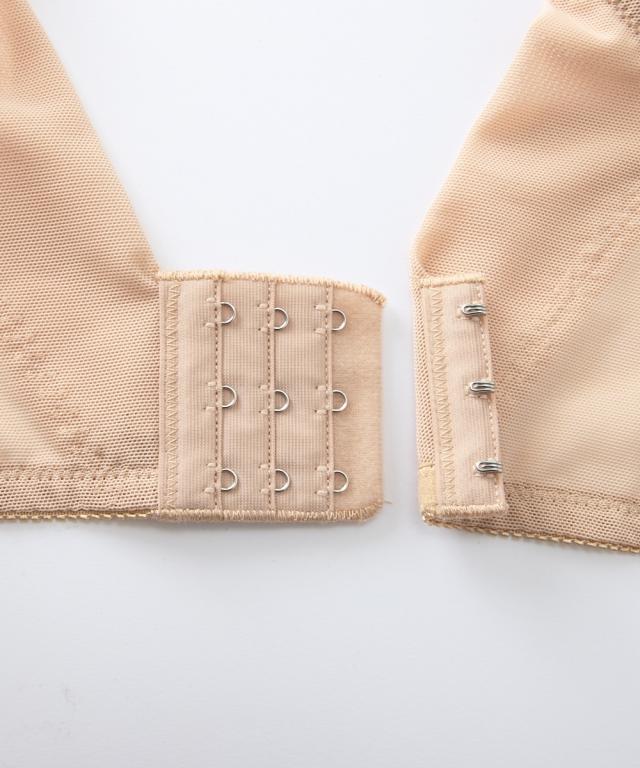 品質=ナイロン・ポリウレタン Uバック フルカップ ワイヤー入り - 後ホック3段3列 サイドボーン入り パッドなし (取り外し不可) ストラップ取り外し着用不可 ストラップ調節可 原産国:中国製 備考:手洗い ※お洗濯は、必ず取り扱い表示にしたがってください。