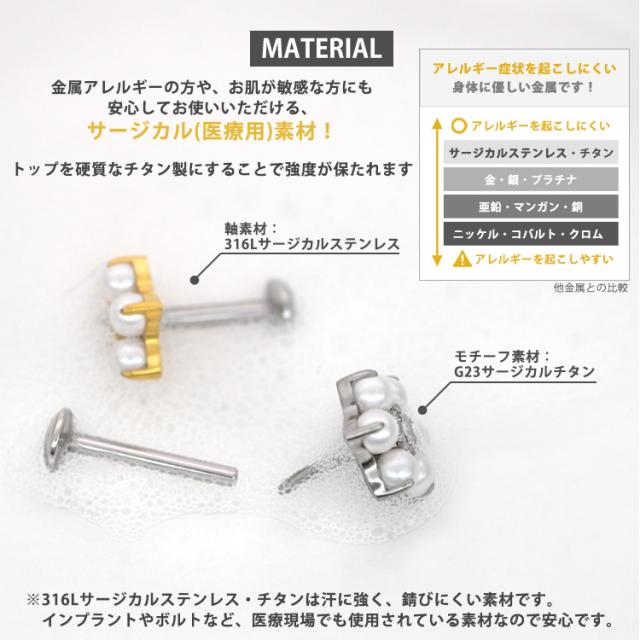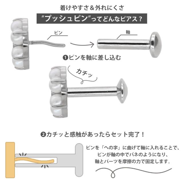 ボディピアスの定番アイテム、ラブレットスタッドがワンプッシュタイプの斬新設計に。 ありそうでなかった、ネジ不使用のボディピアスが登場。トラガスのような狭い部位や、ネジタイプが苦手な方には特にお勧めです。 トラガスのような狭い部位や、ネジタイプが苦手な方には特にお勧めです。