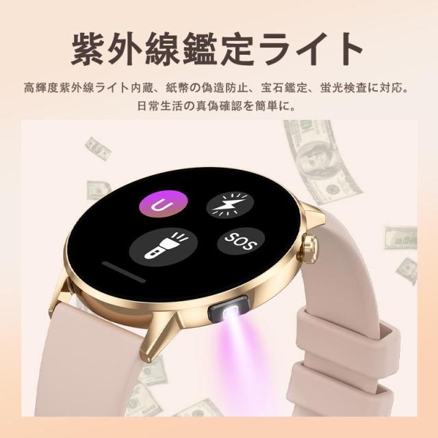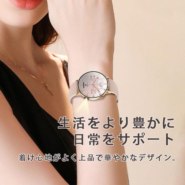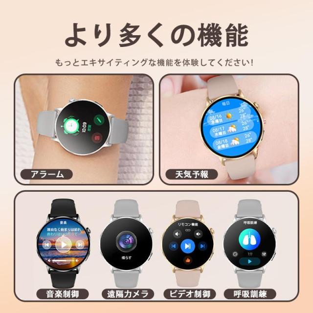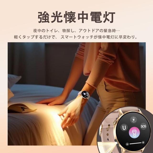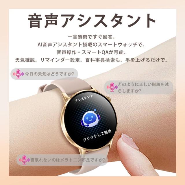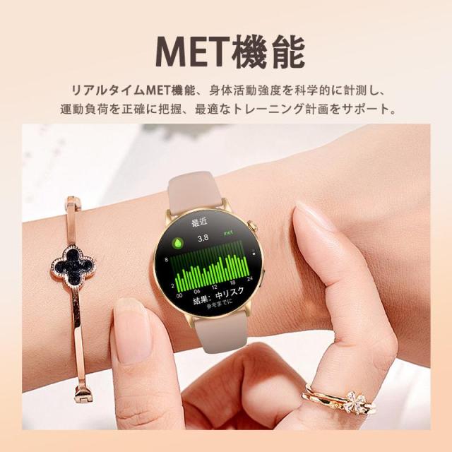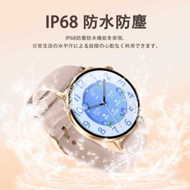 【DIY文字盤&多機能を搭載】- スマートウォッチの文字盤は固定ではありません。多くの文字盤から選べるだけではなく、お好みによって自分が好きな写真を文字盤に設定できます。 460* 460の高解像度と1.32インチのフルタッチスクリーンで、細かい文字でもはっきりと表示されます。他にも音楽コントロール、携帯を探す、腕上げ点灯、タイマー、ストップウォッチ、データ同期、女性生理管理など便利な機能を備えているので、男性でも女性でも使いやすいです!!生活、仕事の効率をさらに上げ、日常生活もより便利にしてくれます。