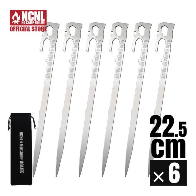 NCNL テントペグ 22.5cm 6本セット 軽量 薄型 ピッタリ重なる 420ステンレス鋼 高強度 鍛造ペグ U字型 錆びにくい 設営道具 ソロキャンプ アウトドア用品 キャンプ用品 収納袋付き