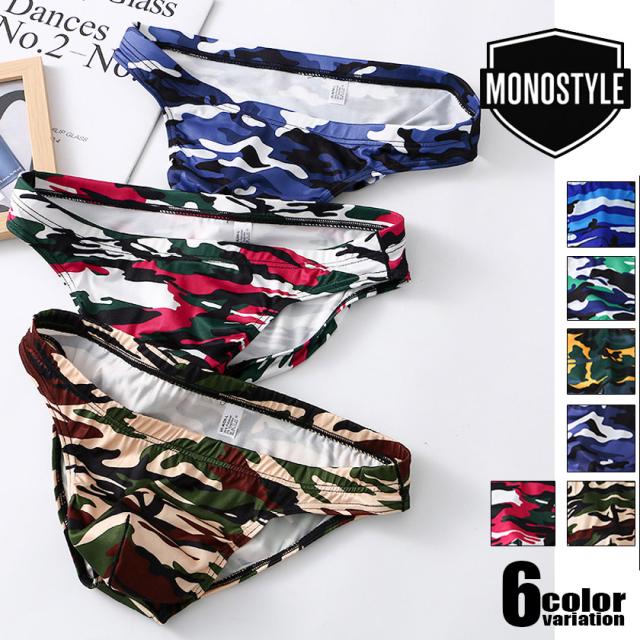 メンズビキニ MONOSTYLE/モノスタイル ストレッチ素材 立体縫製 通気性 迷彩柄 カモフラージュ 男性下着 ローライズ 快適フィット パンツ ブリーフ