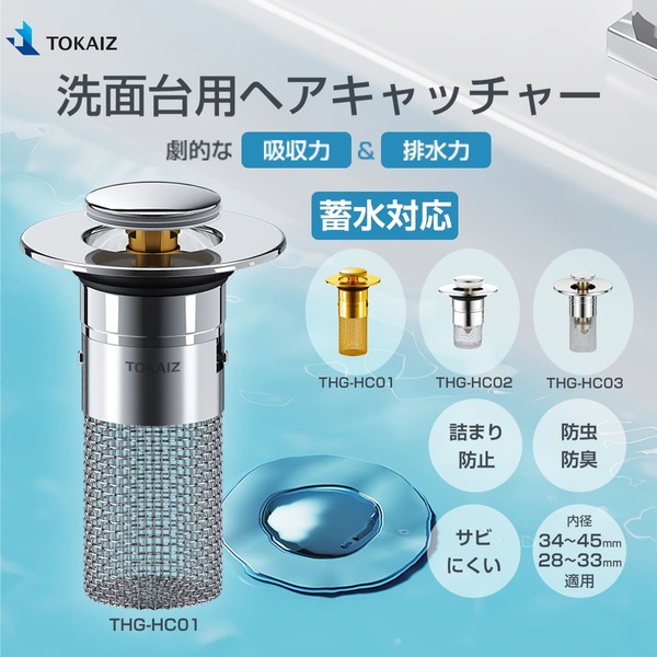 ヘアキャッチャー 排水口 ゴミ受け 洗面台 排水溝 風呂 排水口ネット 排水溝ネット ステンレス 28~45mm対応 掃除しやすい TOKAIZ