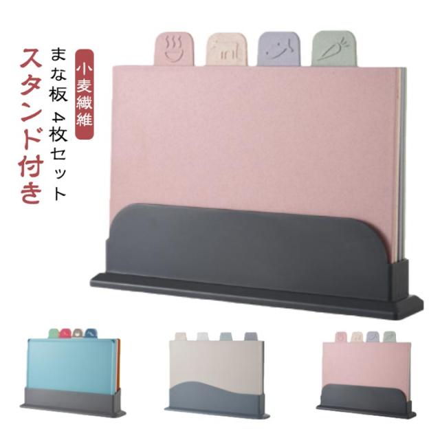 まな板 4枚セット まな板セット 4in1 使い分け カッティングボード まな板 スタンド付き 軽量 ケース付き 小麦繊維 滑りにくい まな板 天然素材 まないた 抗菌 耐熱 防カビ スタンド 薄い プチまな板 キッチン用品