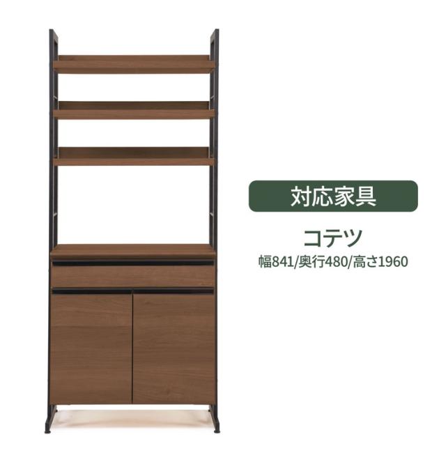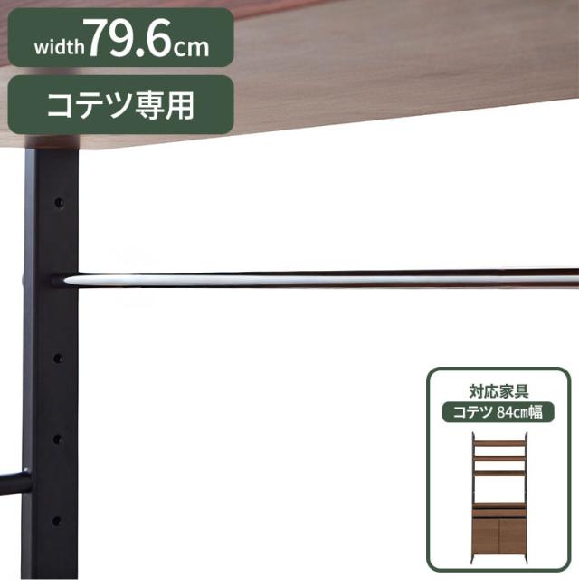 販売している食器家電収納棚【コテツ 84cm幅】専用バーになります。フックなどを引っ掛けることにより調理器具等をかけて使用することができる便利なオプションアイテムです。