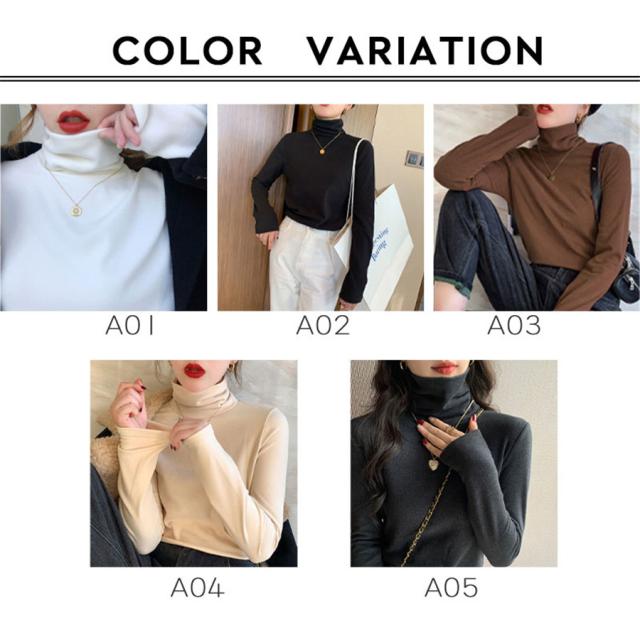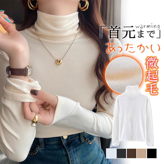 カットソー レディース 長袖Tシャツ 微起毛 長袖 裏起毛tシャツ トップス タートルネック ハイネック 秋冬 あったか 暖かい