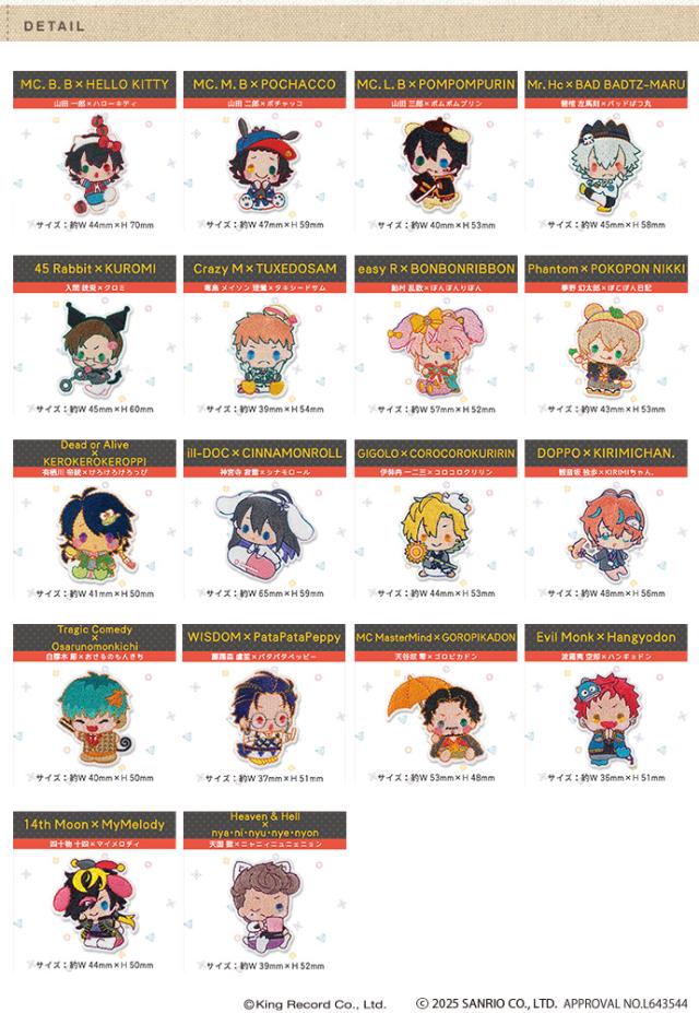 『ヒプノシスマイク SANRIO NAKAYOKU EDIT』のワッペンです。 アイロン接着のほか、シールとしてもお使いいただけます。 |
