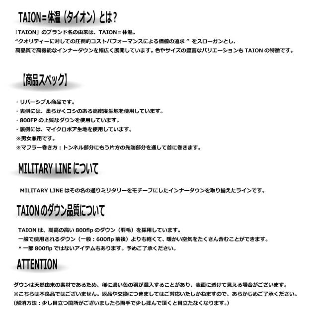 メール便発送 TAION タイオン ミリタリー リバーシブル ダウンマフラー ソフトシェル TAION-R201ALSML-1 グッズ 小物 メンズ レディース ユニセックス