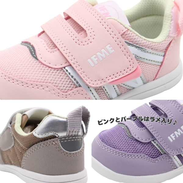 イフミー スニーカー キッズ ベビー ファーストシューズ 子供 ジュニア 靴 紺 ネイビー ベージュ ピンク 紫 パープル 男の子 女の子 シンプル ベルト マジックテープ 面ファスナー 幼稚園 保育園 通園 幅広 3E 甲高 反射材 屈曲性 履きやすい IFME 20-6300