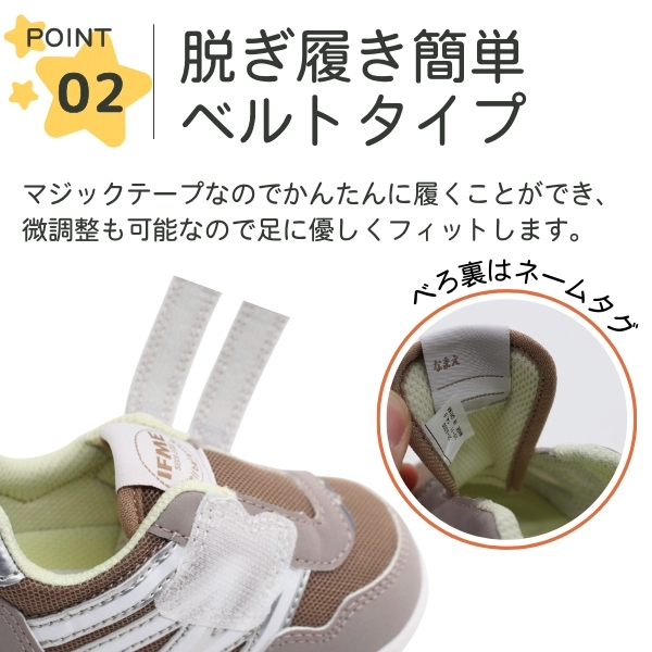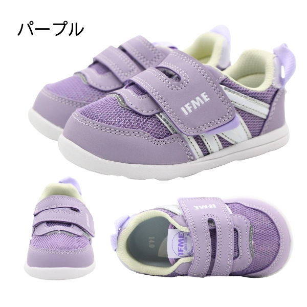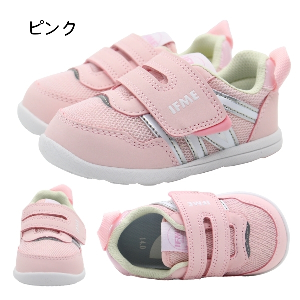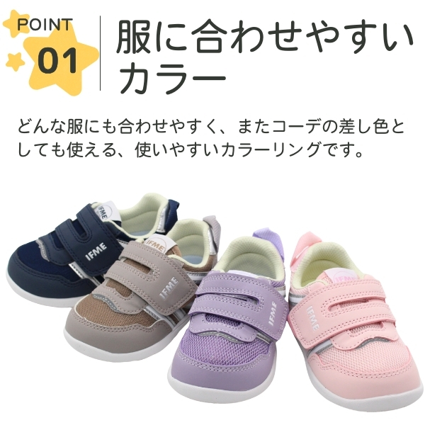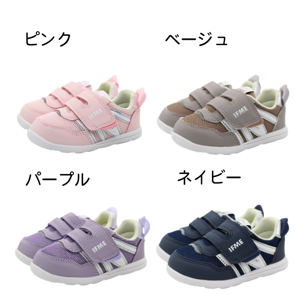 イフミー スニーカー キッズ ベビー ファーストシューズ 子供 ジュニア 靴 紺 ネイビー ベージュ ピンク 紫 パープル 男の子 女の子 シンプル ベルト マジックテープ 面ファスナー 幼稚園 保育園 通園 幅広 3E 甲高 反射材 屈曲性 履きやすい IFME 20-6300