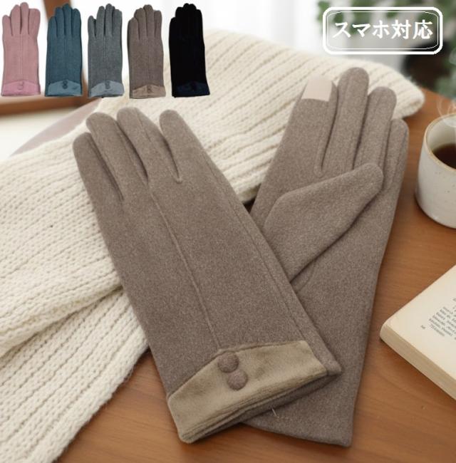 Mirakana D.KELLY プレミアムクオリティファッショングローブ レディス 手袋 スマホタッチ対応 1組 freeサイズ/5色 ボタン ふわふわあったか裏起毛 冬用 ファッション