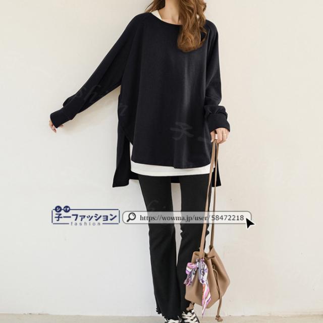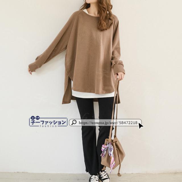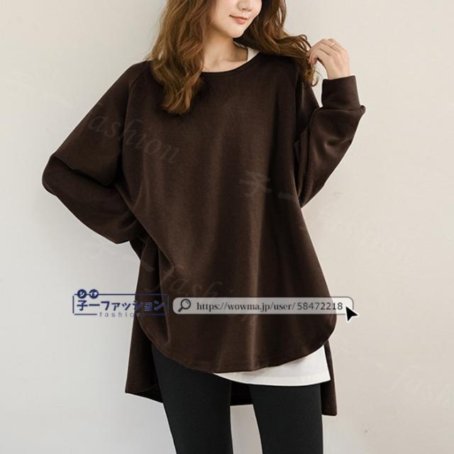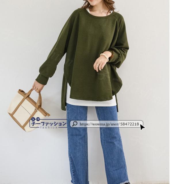 <72H限定・1点2,550円!クーポン利用で>トレーナー 長袖 サイドスリット 冬新作 スウェット レディース カジュアル カーブしたフロント プルオーバー トップス ナチュラル 体型カバー 無地 tシャツ ゆったり パーカー Tシャツ 肌触りいい