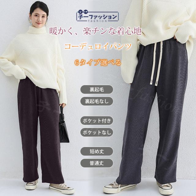 <72H限定・1点2,750円!クーポン利用で>コーデュロイパンツ ワイドパンツ 冬新作 コーデュロイ ぬくぬくパンツ レディース 裏起毛 あったか 防寒 カジュアル ロング丈 ゆったり シンプル 体型カバー可愛い 無地 肌触りいい ストレートストレッチ スウェットパンツ