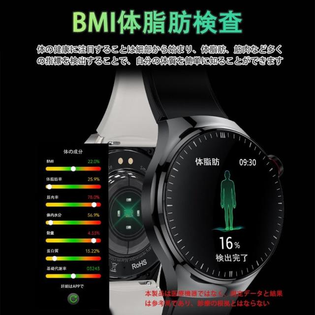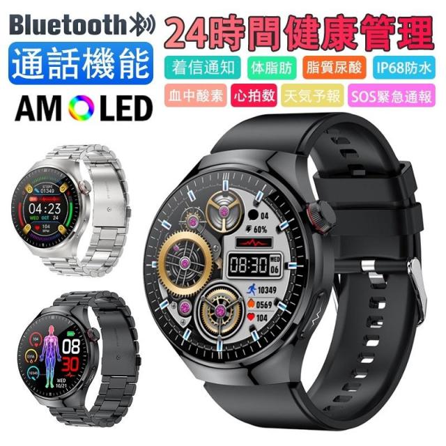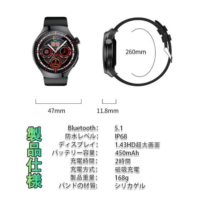 スマートウォッチ 日本製センサー 1.43インチAMOLED画面 血中酸素 皮膚温測定 BMI体脂肪 尿酸血中脂質 高精度心拍数 450mAh大容量 睡眠管理 呼吸率 歩数計
