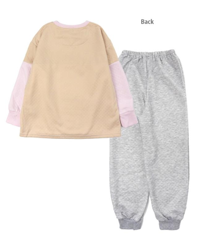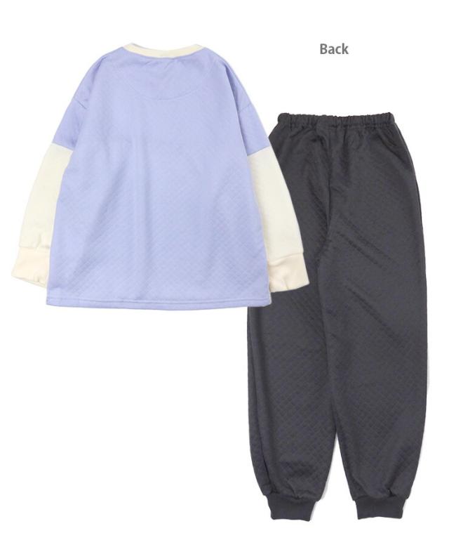 薄手の綿混生地ルームウエア セットアップ 部屋着 薄地 ポリエステル スポーツブランド バイカラー リブ裾口 プルオーバー 女児 子供 子ども