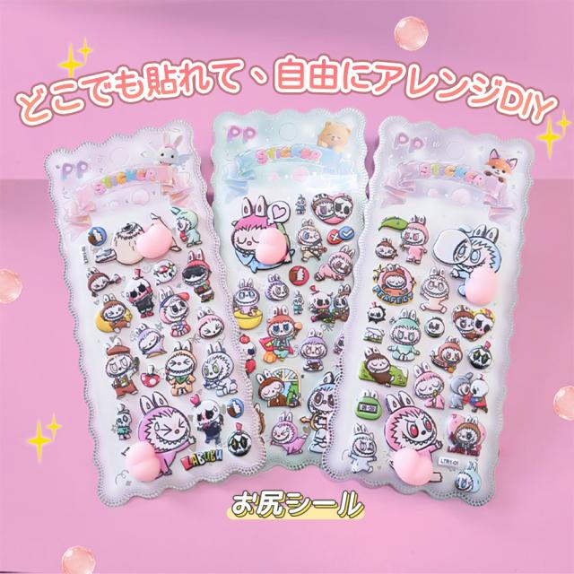 ★即納★大人気につき即完売★\3枚入/3Dシール おしりシール ぷにぷにシール ご褒美シール 新年 クリスマス プレゼント ギフト 小学生 子供 シール交換 シール集め ステッカー ぷっくりシール キャラクター ぷくぷく 立体シール 手帳 DIY デコシール 女の子