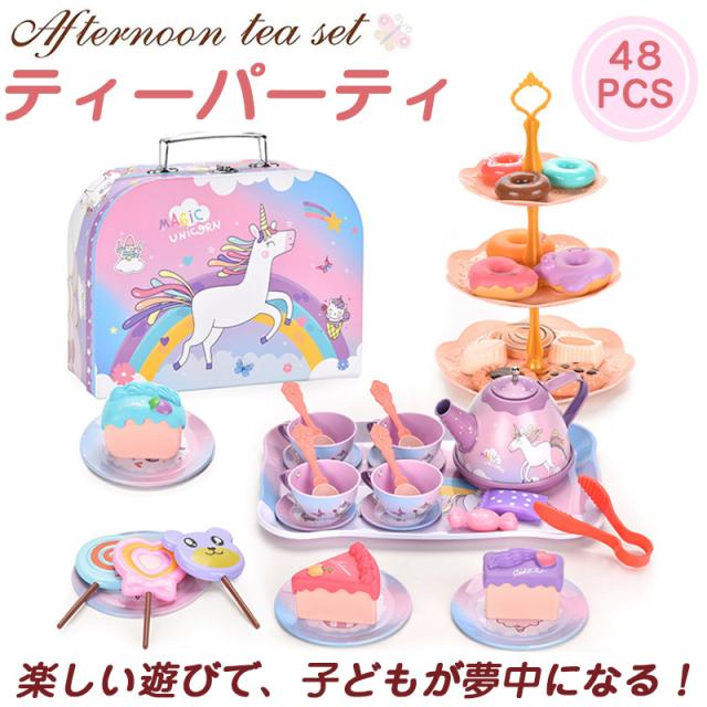 【女の子の夢】おままごと ティーパーティーセット おもちゃ ケーキ カフェ ドーナツ 手提げケース プレゼント 誕生日 おままごとセット スプーン