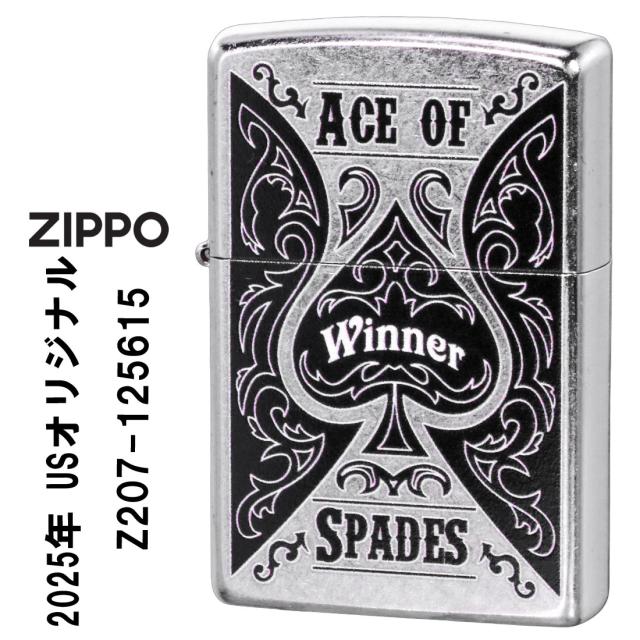 クリスマス zippo ジッポーライター USオリジナルZIPPO 2025 トランプ柄 スペードデザイン ACE OF SPADES ストリートクローム プリント加工 zZ207-125615 オイルライター メンズ レディース Winner 勝利 幸運 カッコイイ ギフト プレゼント 送料無料 メール便対応