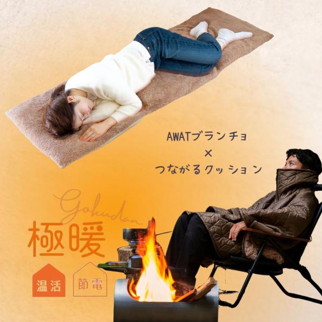 極暖 AWAT ブランチョ つながる あったか クッション セット あったかグッズ もこもこ あたため 防寒 冷え性 冷え 対策 グッズ 家事 育児 暖かい 冬用 冬 寒い ブランケット ポンチョ アウトドア キャンプ 寒さ 長方形 正方形 車 座席