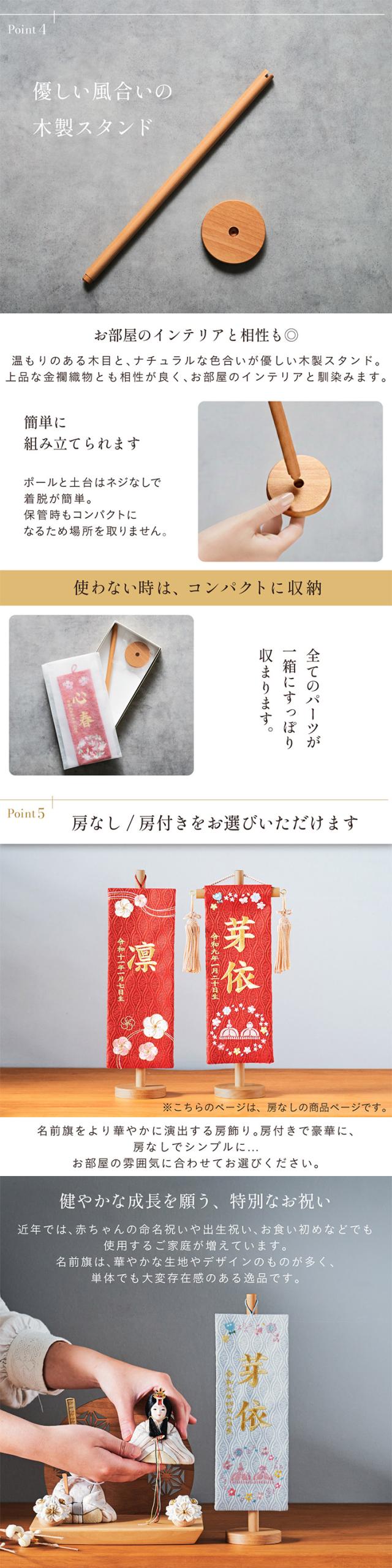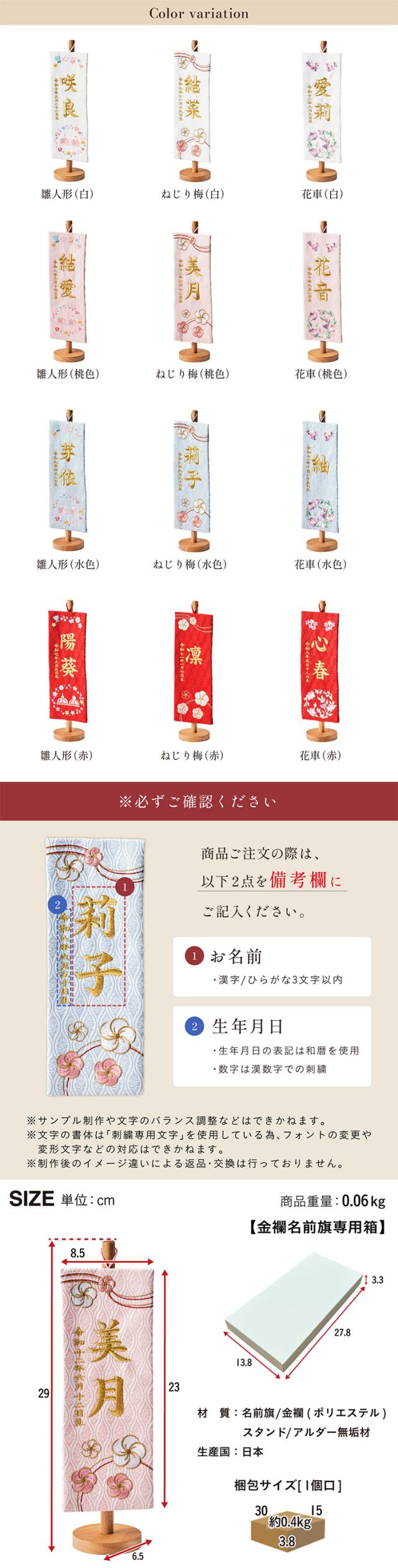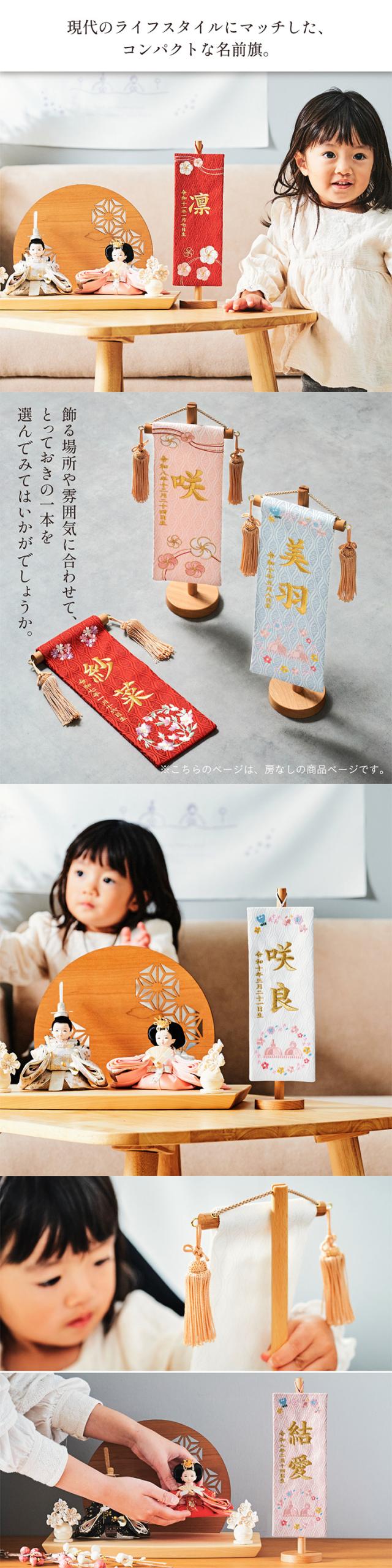 名前旗 女の子 スタンド 刺繍 節句 命名書 おしゃれ かわいい ひな人形 お雛様 ひな祭り 出産祝い 命名 誕生日 名入れ旗 生年月日入【名入れ無料】金蘭名前旗 房なし スタンド2点セット 4色/3タイプ対応