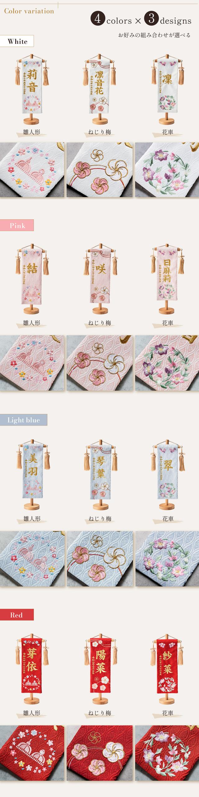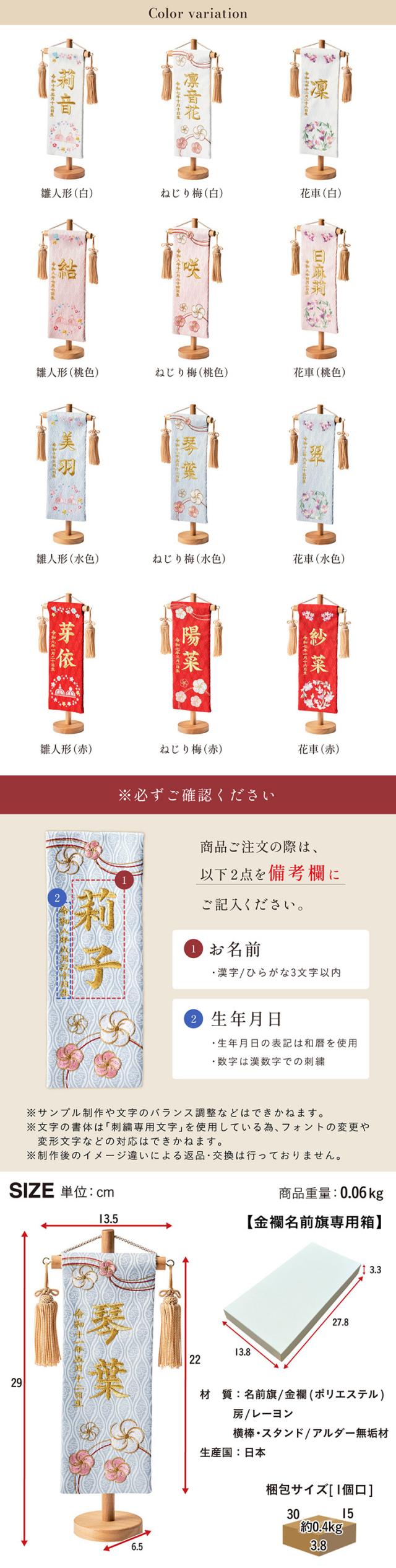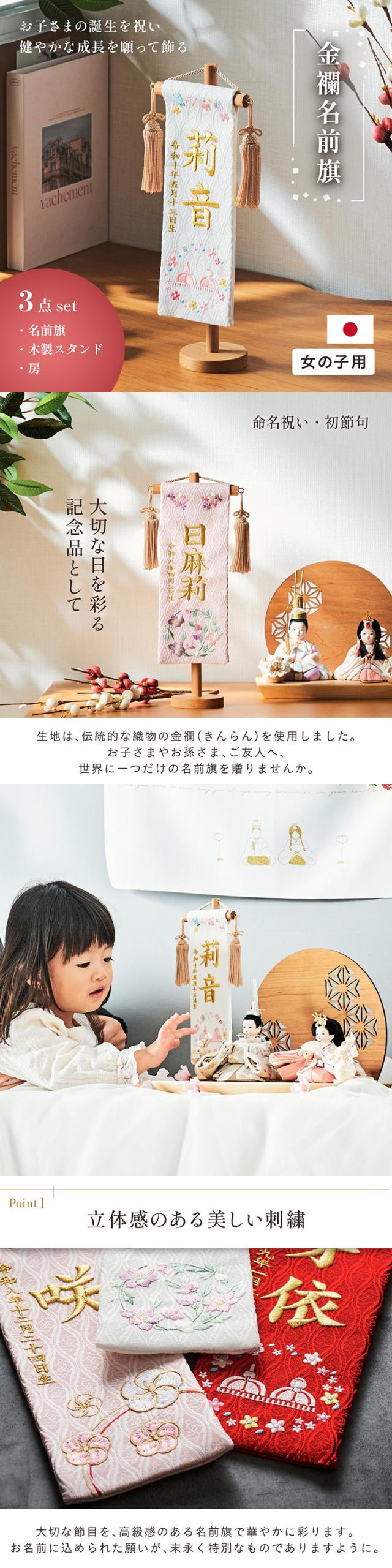 名前旗 女の子 スタンド 刺繍 節句 命名書 おしゃれ かわいい ひな人形 お雛様 ひな祭り 出産祝い 命名 誕生日 名入れ旗 生年月日入【名入れ無料】金蘭名前旗 房あり スタンド3点セット 4色/3タイプ対応