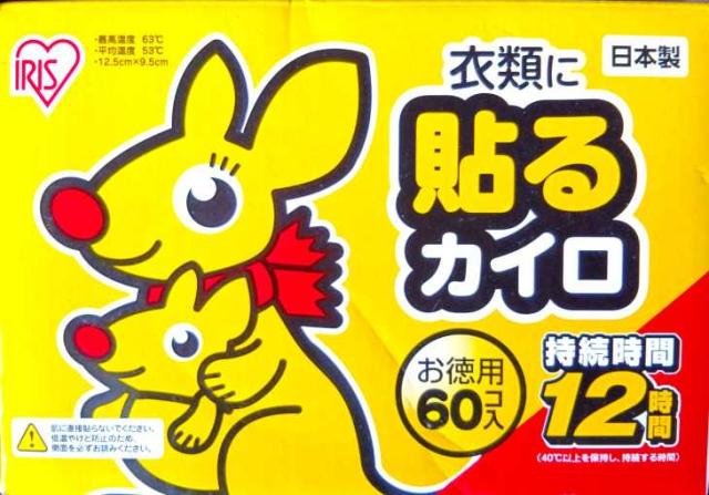 レギュラーサイズの衣類に貼るタイプのカイロです。