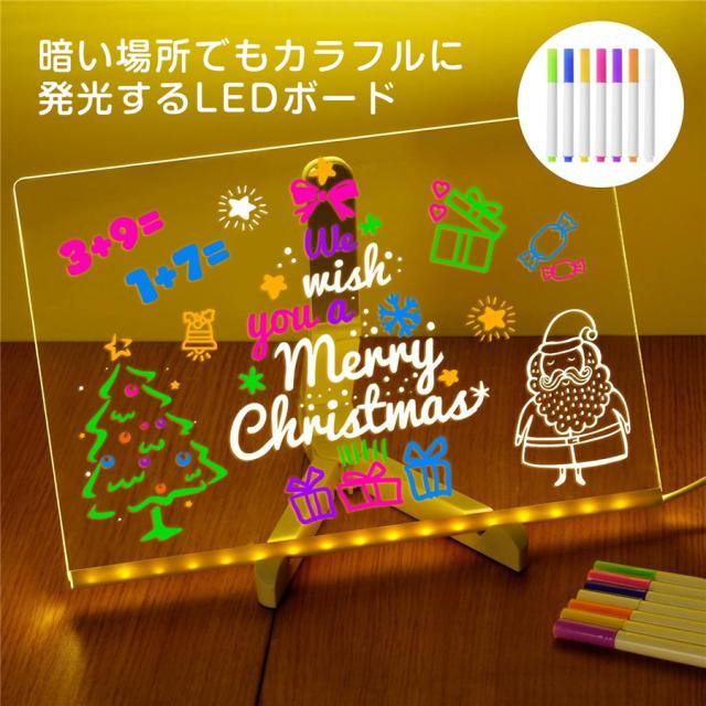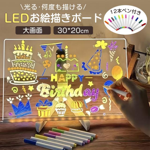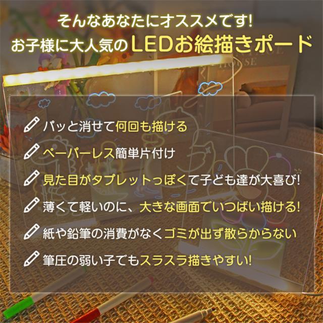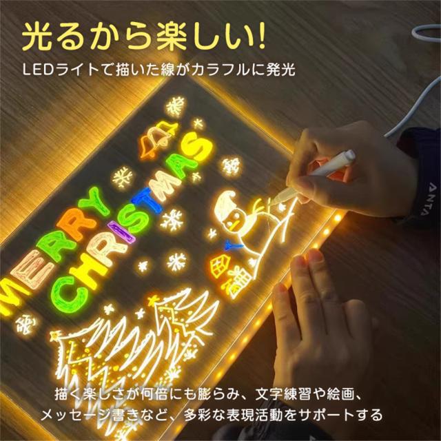お絵描きボード 大画面 LED ノートボード 電子メモ 消せる タブレット 光る 12本ペン付き 落書き 文字練習 掲示板 伝言板