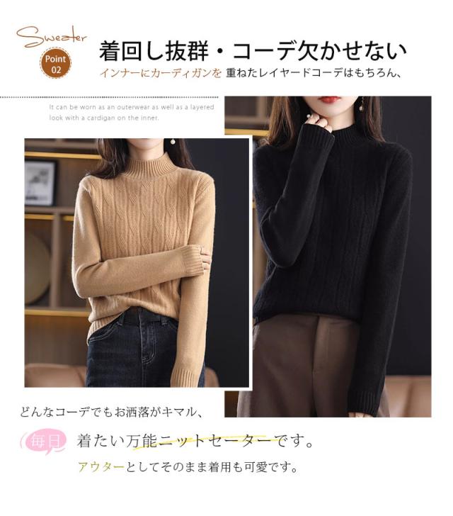 ニットセーター レディース ニットトップス 秋 冬 ハイネックニット 長袖 トップス 秋服レディース カットソー プルオーバー 着痩せ きれいめ ストレッチ ニットウエア ケーブル編み 韓国 カジュアル 通勤