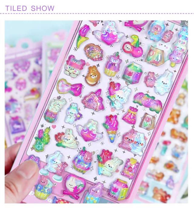 ぷくぷく DIY 子供用 11枚セット キッズ アルバムデコ ステッカー 女の子 手帳シール 3D立体シール ノート 11枚セット カラフル ぷっくりシール ご褒美シール 贈り物 かわいい 貼り付け プレゼント 手芸用品