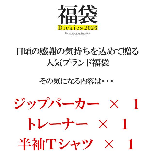 Dickies ディッキーズ 4点入り 福袋 2026 ふくぶくろ ジップパーカー アウター トレーナー スウェット スエット プルオーバー 半袖 Tシャツ 半袖Tシャツ パンツ ボトムス 大人 20代 30代 40代 50代 ユニセックス 男 秋 冬 アメカジ ストリート ストリートファッション 下北沢 下北系 古着 古着系 90s 90年代 2000年代 Y2K 父の日 父の日ギフト 父の日プレゼント メンズファッション 東京 プレゼント 誕生日 記念日 贈り物 ギフト 休日コーデ カジュアル ルームウェア まとめ買い お得セット ラッキーバッグ ビッグシルエット トレンドコーデ 冬服 秋冬コーデ 防寒 リラックスウェア デイリーウェア ユニセックスコーデ ワンマイルウェア 普段着 旅行コーデ おしゃれ メンズカジュアル配送について
